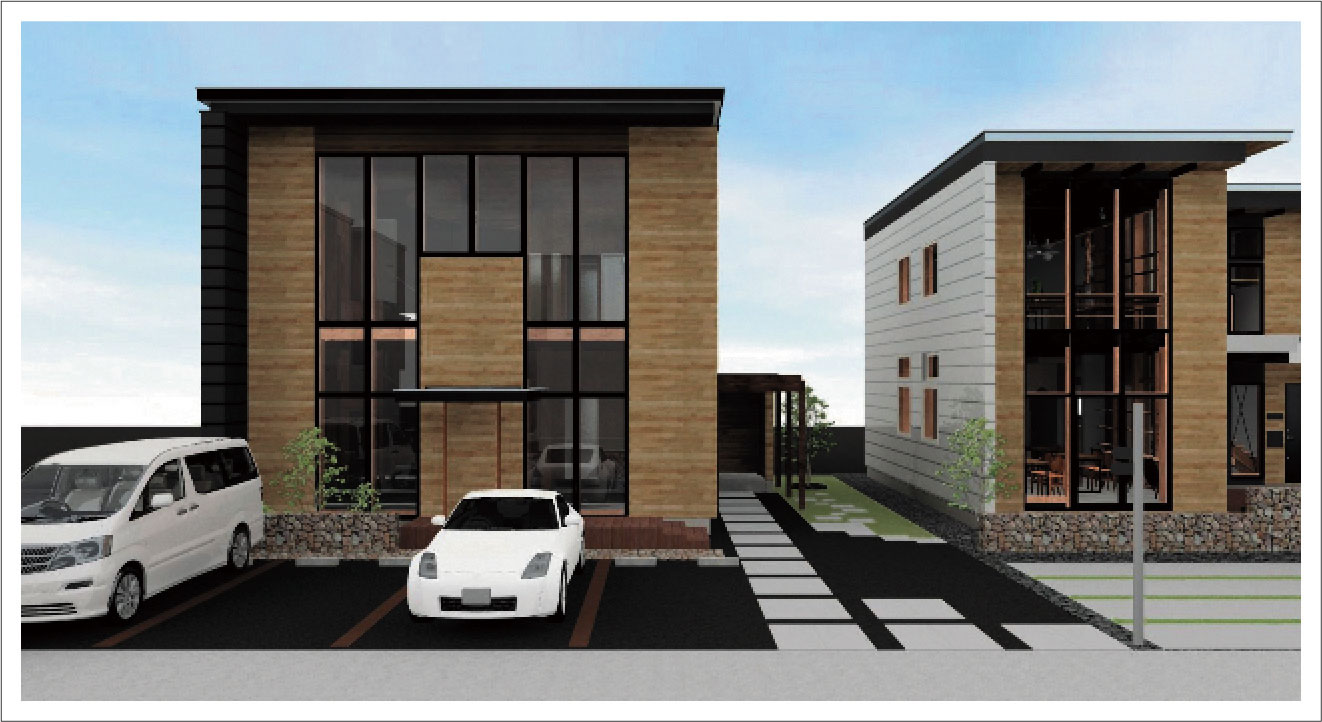 W&では1棟につき5、6台の駐車スペースを確保。ひとつのテナントあたり2、3台の駐車が可能です。