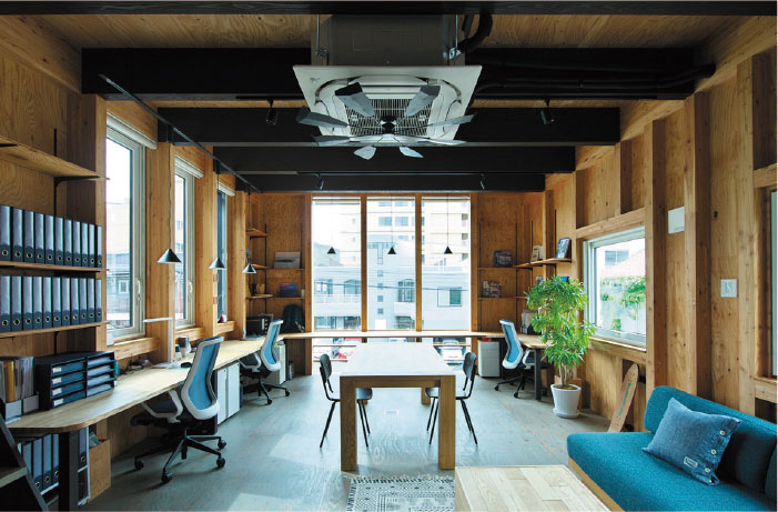 温もりのある木材をふんだんに使用したW&は、これまでのオフィスやテナントの概念を変える、上質で憩いのある空間を実現します。